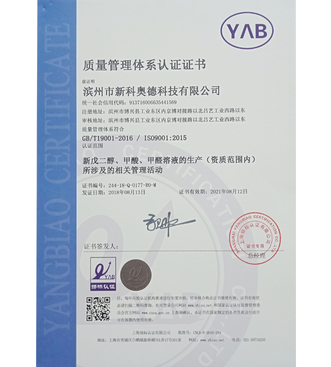 濱州市新科奧德科技有限公司成立于2007年,幾年來企業(yè)規(guī)模不斷擴大,經濟效益與社會效益不斷提高,實現利稅連年遞增,生產經營由過去單一產品的開發(fā)模式向多元化模式發(fā)展,公司坐落于黃河三角洲美麗的董永故里,呂劇起源地——山東博興,是新戊二醇、甲酸...